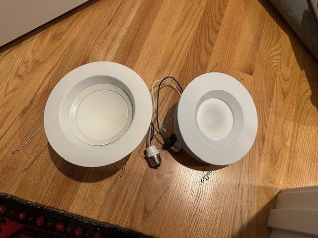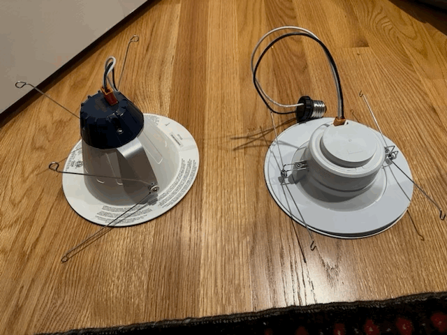 In 2011, we replaced lighting cans with LED inserts in our house, instantly reducing lighting energy use by 50% or more. The inserts looked like the ones on the left in the photos below.