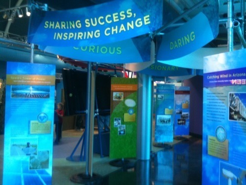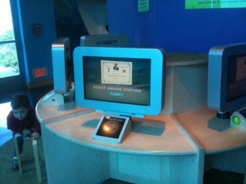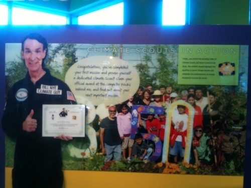 We visited Bill Nye’s terrific Climate Lab at the Chabot Space and Science Center in Oakland, CA on Saturday May 7, 2011. I didn’t get to play around with the exhibits as much as I’d like (that’s what happens when you have two year old twins) but I was very impressed with the smart use of new media and the ways the exhibit got kids to participate. The focus was mostly on solutions to the climate problem, which was a refreshing change, and the technical information it provided was almost all on the mark. I heartily recommend this exhibit for those in the Bay area who are interested. It’s a very nice way to educate kids about climate.