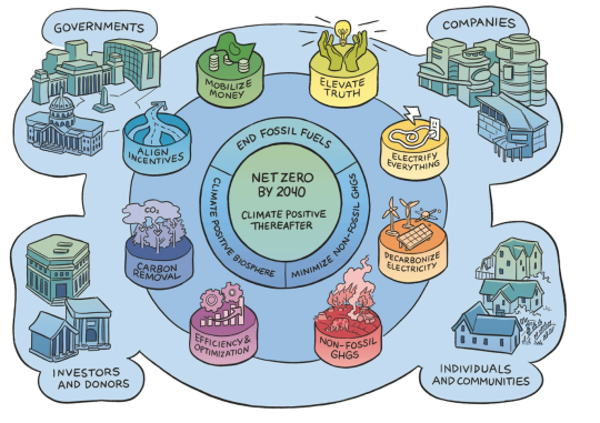 The overarching framing of the book (*the eight pillars of solving climate change”) is summarized in this graphic: