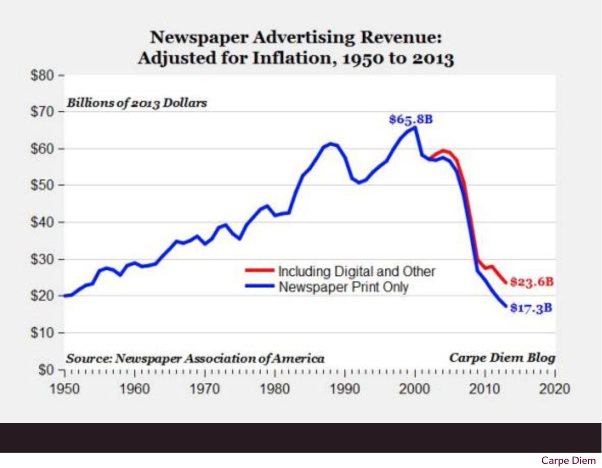 And this is the quandary in which the media find themselves. The world is getting more complicated, and the need for “deep dive” factual journalism is greater than ever, but the cash cow of classified ads, which funded such activities in the past is all but gone, and the media world is under increasing financial pressure. That’s why we probably need alternative business models for investigative media in our increasingly complex technological age.